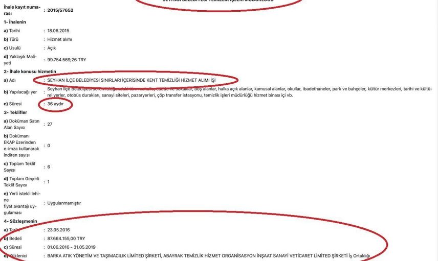 Karalar’ın 2014-2019 yılları arasında Seyhan Belediye Başkanlığı yaptığı dönemde, Aziz İhsan Aktaş’ın firmalarından biri olan Barka Atık Yönetimi’ne 1 Mart-31 Mayıs 2015 tarihleri arasında 7 milyon 39 bin 373 TL değerinde ihale verildiği iddia edilmiştir. Ayrıca, bu firmaya 1 Haziran-31 Mayıs 2019 tarihleri arasında 87 milyon 664 bin 115 TL’lik bir ihale daha verilmiştir.