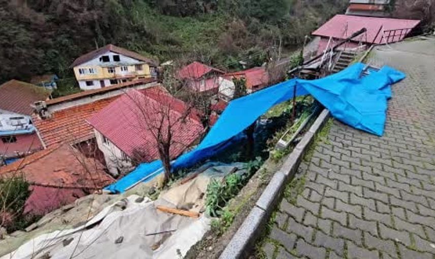 Ekiplerin bölgedeki inceleme ve risk analiz çalışmaları devam ediyor. Heyelanın meydana geldiği alan da branda ile kapatıldı.