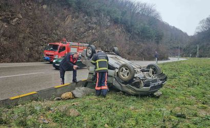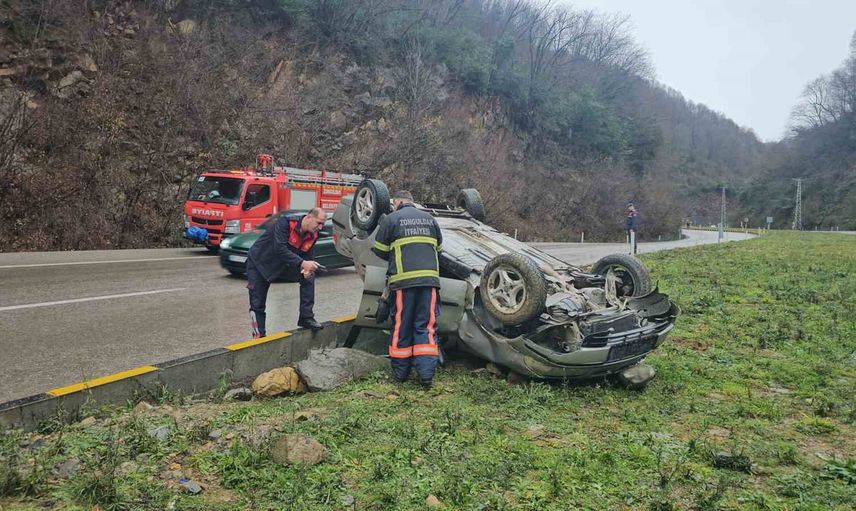 Sabah saatlerinde Zonguldak-Ankara kara yolunun 12. kilometresinde bir kaza meydana geldi. Kontrolden çıkan Fiat marka otomobil, refüje çarpıp takla attı.