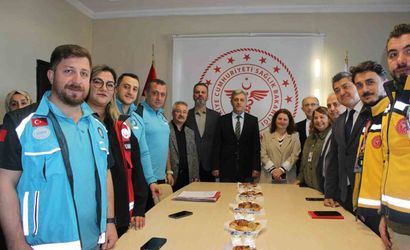 Zonguldak'ta gerçekleştirilen UMKE tatbikatına katılan sağlık çalışanlarına teşekkür belgeleri takdim edildi.